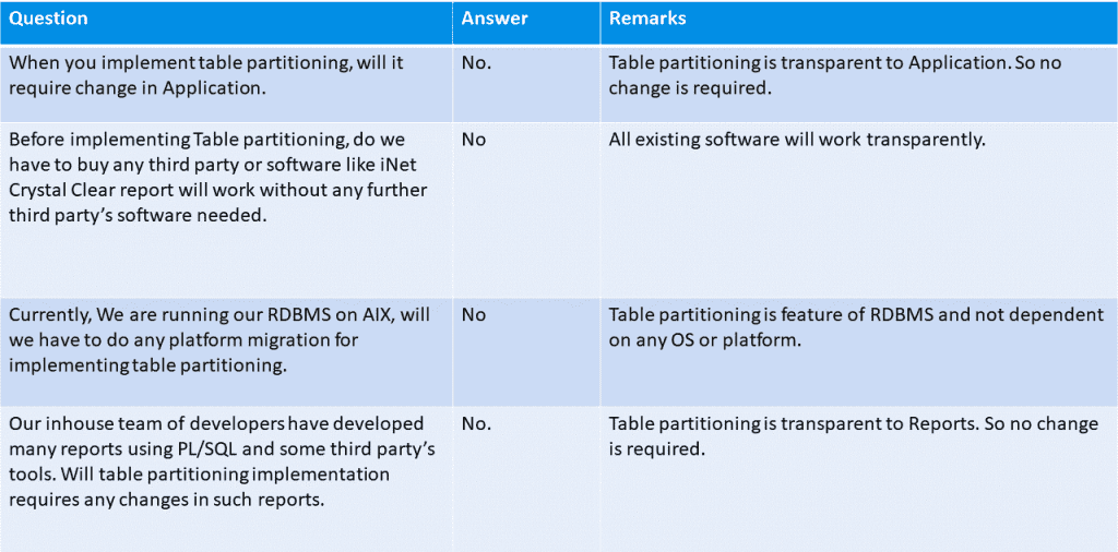 Die Partitionierung der Tabellen wird automatisch und transparent von der Datenbank selbst verwaltet, ohne dass zusätzliche Arbeit für die Anwendung oder das EDV-Personal, das das System verwaltet, entsteht. Sie besteht im Wesentlichen darin, eine Tabelle in mehrere Teile zu unterteilen, die getrennt verwaltet werden können.