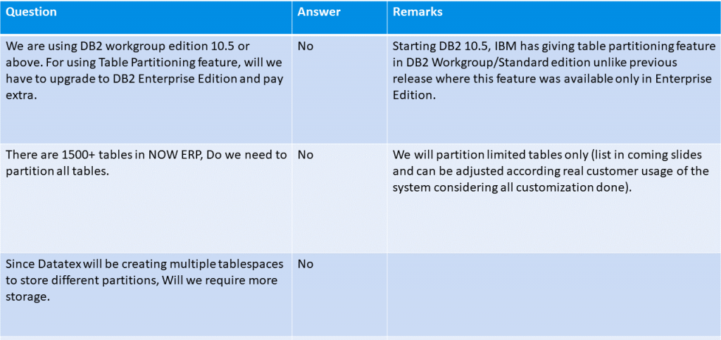 Die Datenarchivierung ist die Lösung der alten Schule, aber wir bei Datatex sind der Meinung, dass die Methode der „Tabellenpartitionierung nach Daten“ eine bessere und effektivere Alternative ist, wenn man die Möglichkeiten der neuesten Technologie berücksichtigt. Die Datenarchivierung erfordert einen Archivierungsprozess auf zusätzlicher Infrastruktur und ein langwieriges, komplexes Wiederherstellungsprogramm, wenn auf diese Daten zugegriffen werden soll.