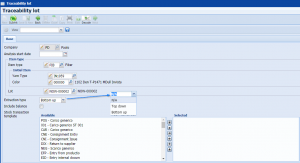 In the Parameter Request Screen called by the Menu, it is possible to filter by a specific lot or by item, specify the kind of analysis and a list of stock transaction template to take into consideration. If no template is specified, the system considers all transactions.