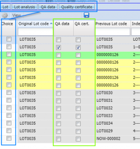 From the collection screen it is possible to know immediately if on a specific lot in the list some Quality data or a quality certificate has been produced.