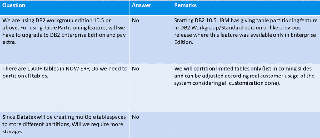 O arquivamento de dados é a solução da velha guarda, mas na Datatex acreditamos que a metodologia de “particionamento de tabelas por dados” é uma alternativa melhor e mais eficaz, considerando as possibilidades oferecidas pela tecnologia mais recente. O arquivamento de dados requer um processo de arquivamento em infra-estruturas adicionais e programas de recuperação complexos e fastidiosos quando é necessário aceder a estes dados.